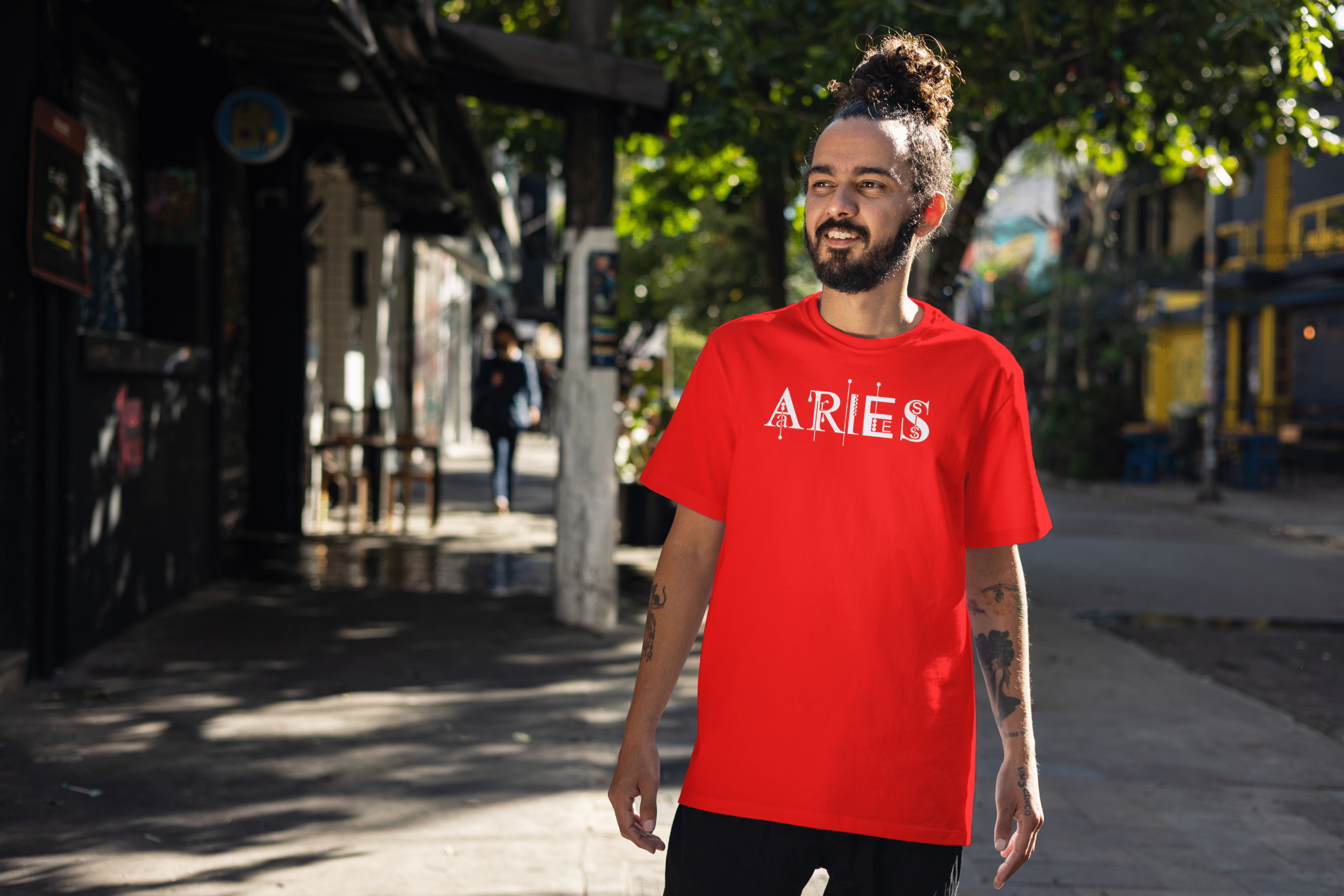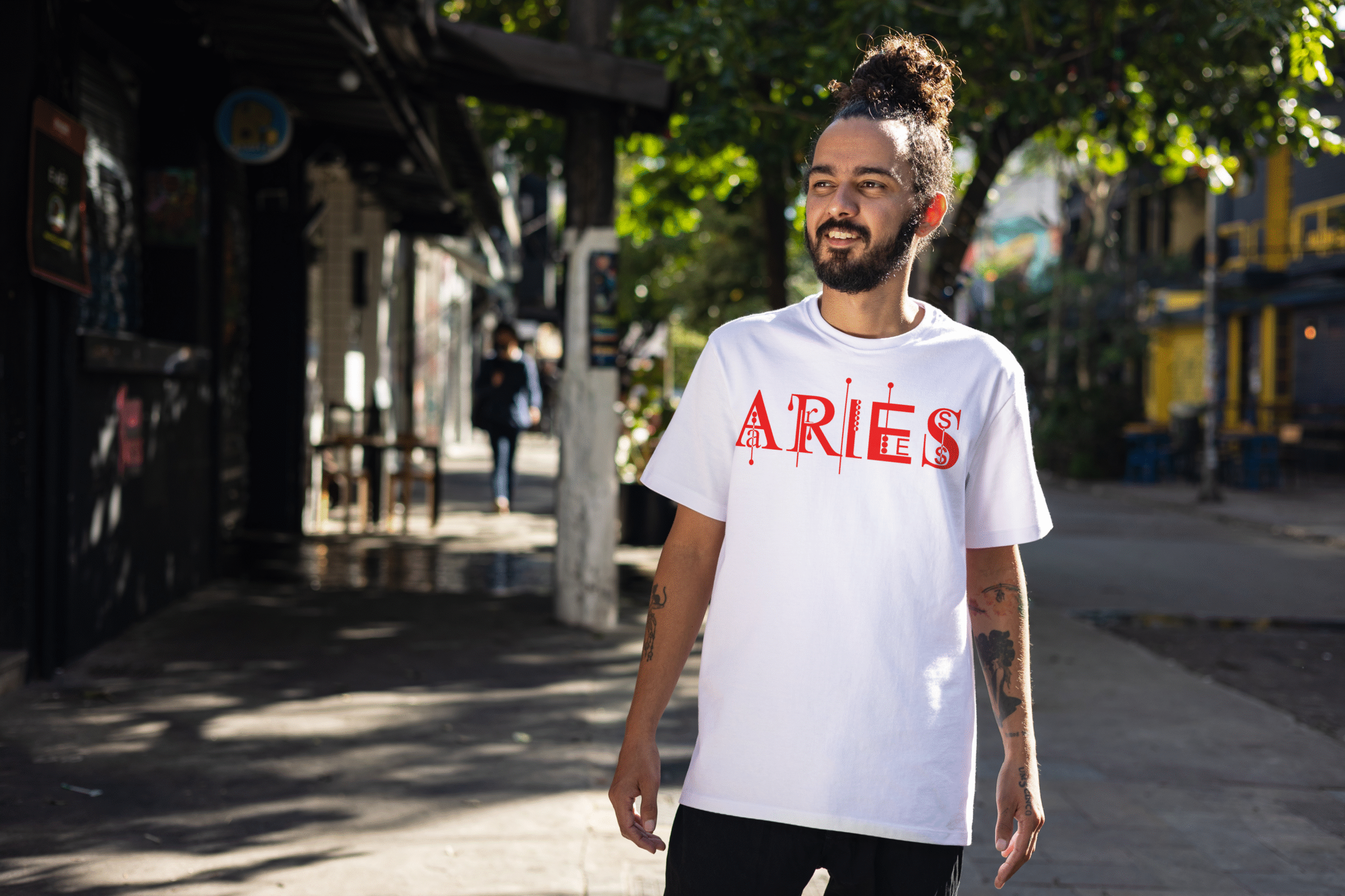 🔴 Designer geometric “ARIES” typography on front