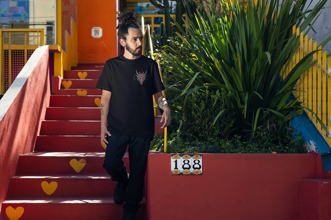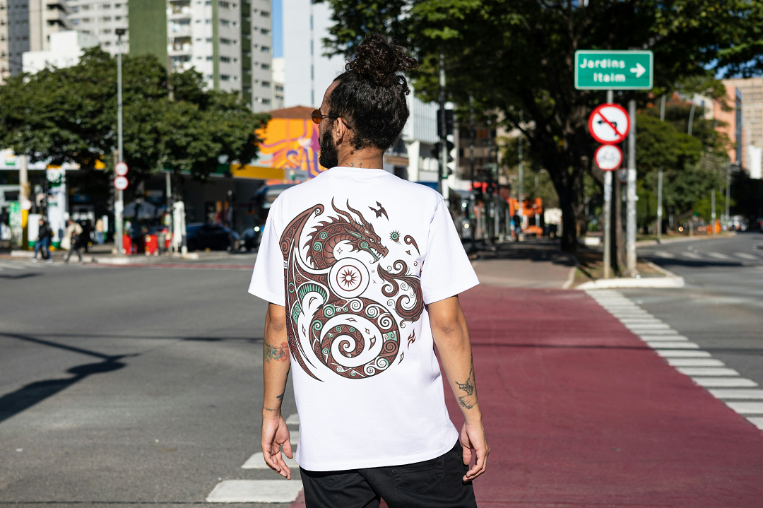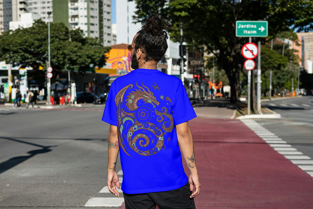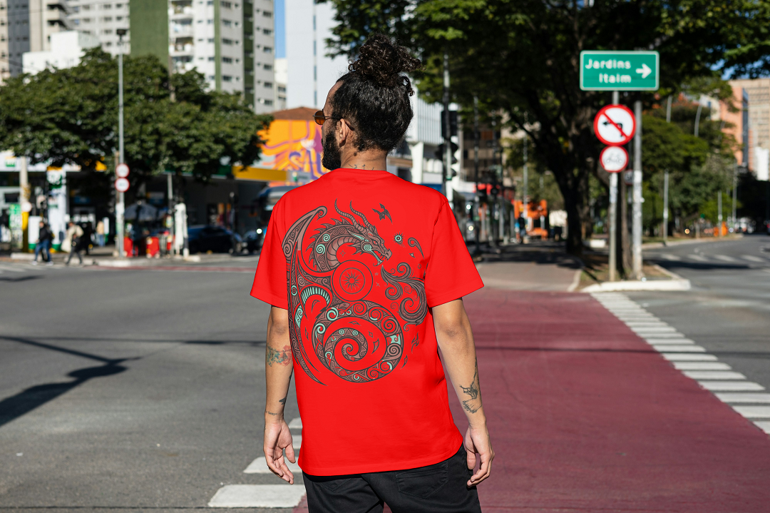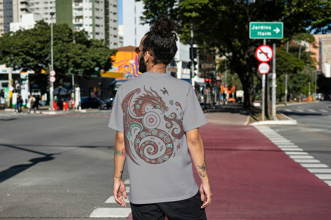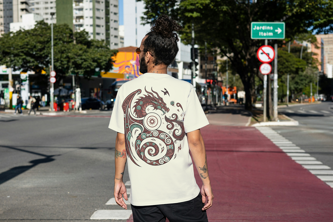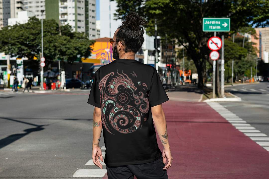 Featuring a powerful tribal dragon motif symbolizing strength, balance, and wisdom, this tee combines traditional symbolism with a modern urban edge.