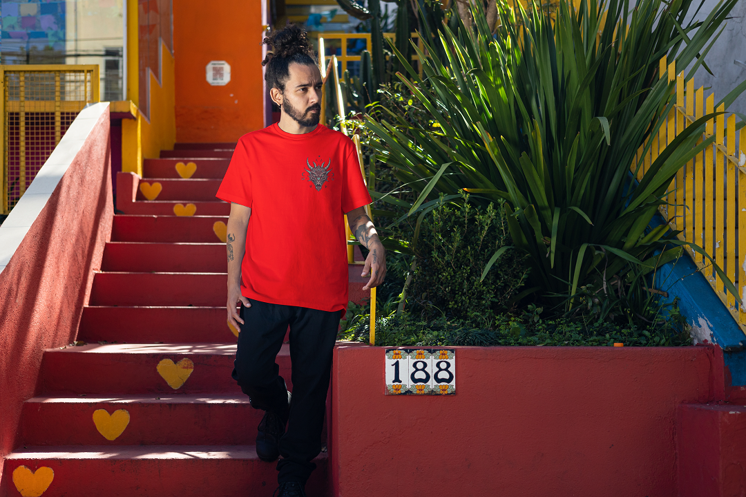 Step into the streets with bold attitude in Infinio’s “Tribal Dragon” Street Edition t-shirt.