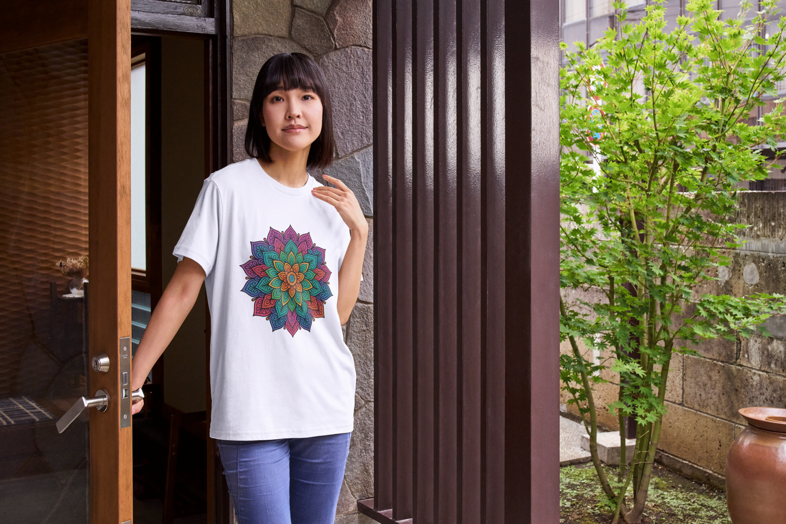 • Premium cotton t-shirt with vibrant mandala artwork
